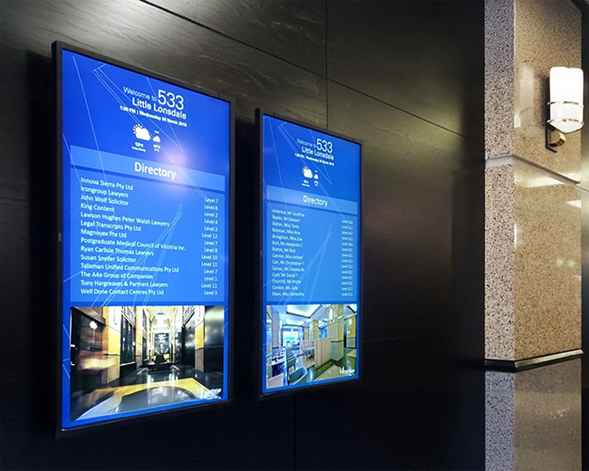 Yes, we install digital signage in common areas, including foyers, lifts and corridors for both strata and commercial buildings.